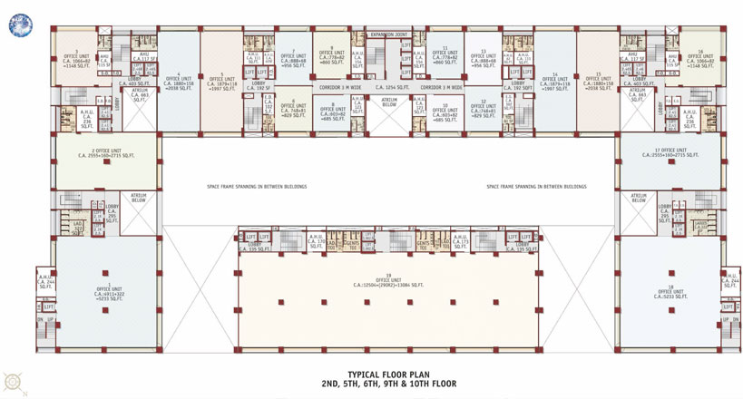 • The building is designed with flexibility of space division with as many as 14 staircases & 27 lifts, which allows direct & easy access to individual offices.